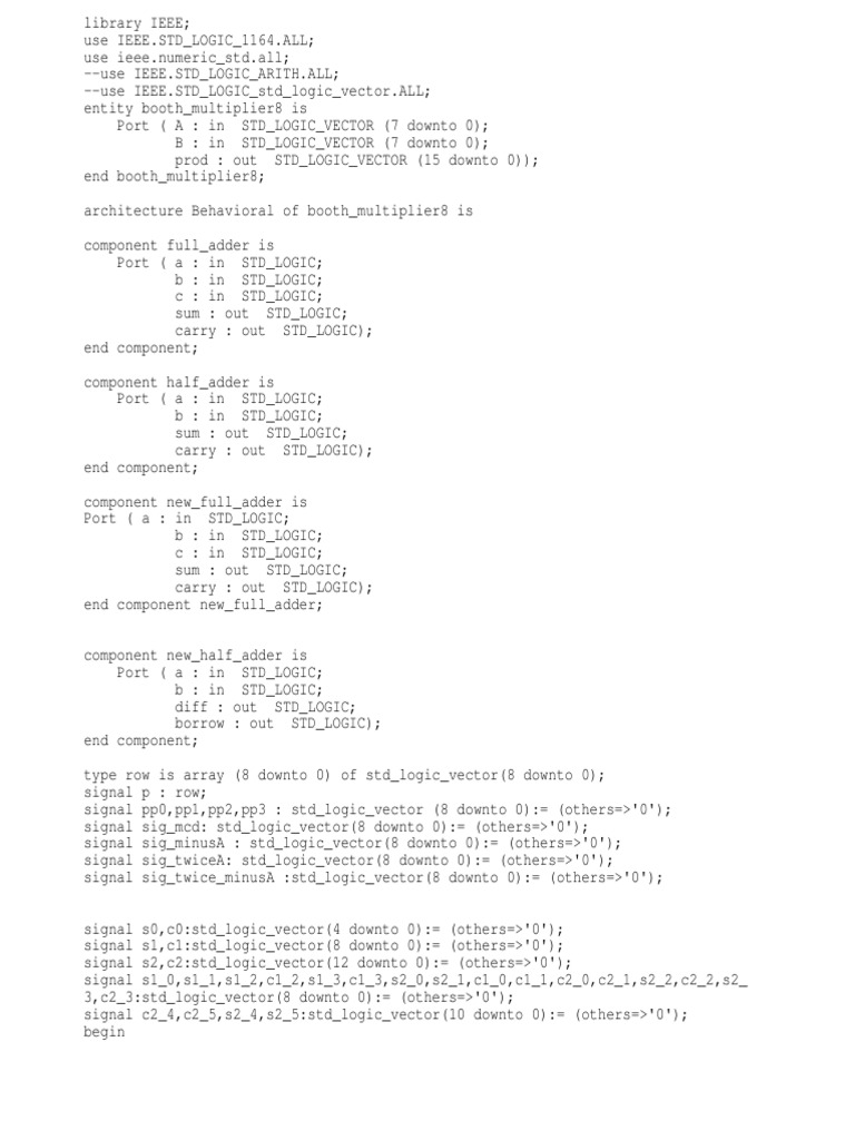 vhdl code for booth multiplier Vhdl Scientific Modeling